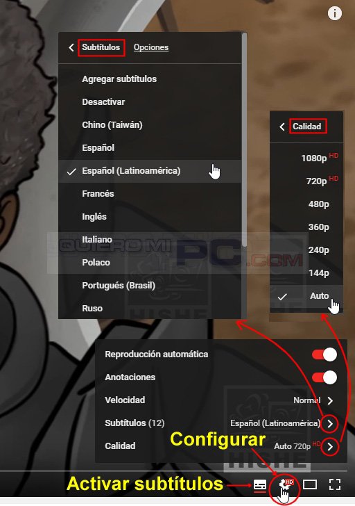 YouTube: Configurar Calidad y Subtítulos
