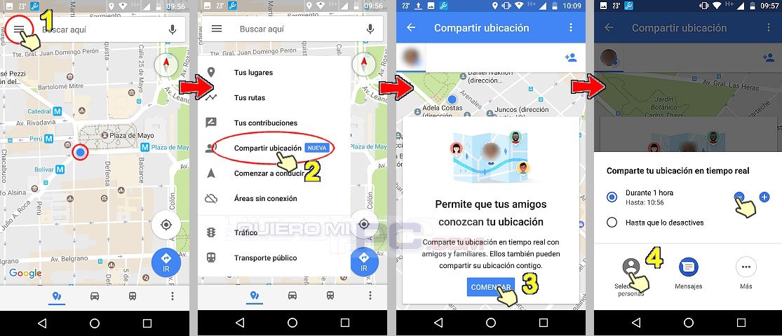 TRUCO: Ahora Google Maps permite compartir tu ubicación con tus amigos o familiares. Podés indicar con quien y por cuanto tiempo la compartís, y tus contactos elegidos podrán ver en ese lapso donde estás. Mirá cómo hacerlo en el gráfico.