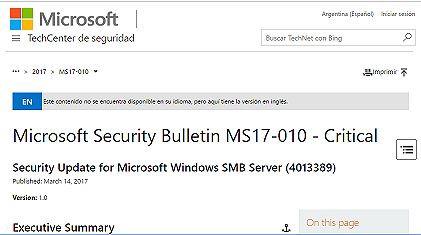 El Ransomware Wanna Cry atacó masivamente a la Internet de 100 países. Microsoft ya lo solucionó. Si no estás seguro de tener el parche de seguridad instalado, en esta página podés descargarlo para cualquier versión de Windows e instalarlo.