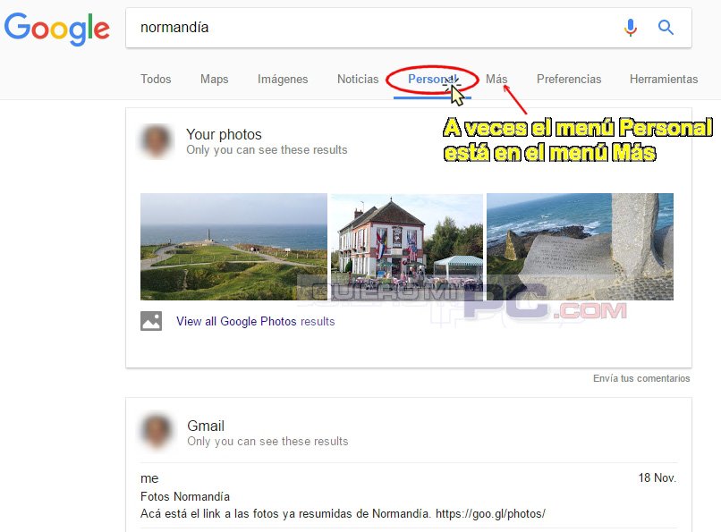 Pestaña PERSONAL en la búsqueda de Google