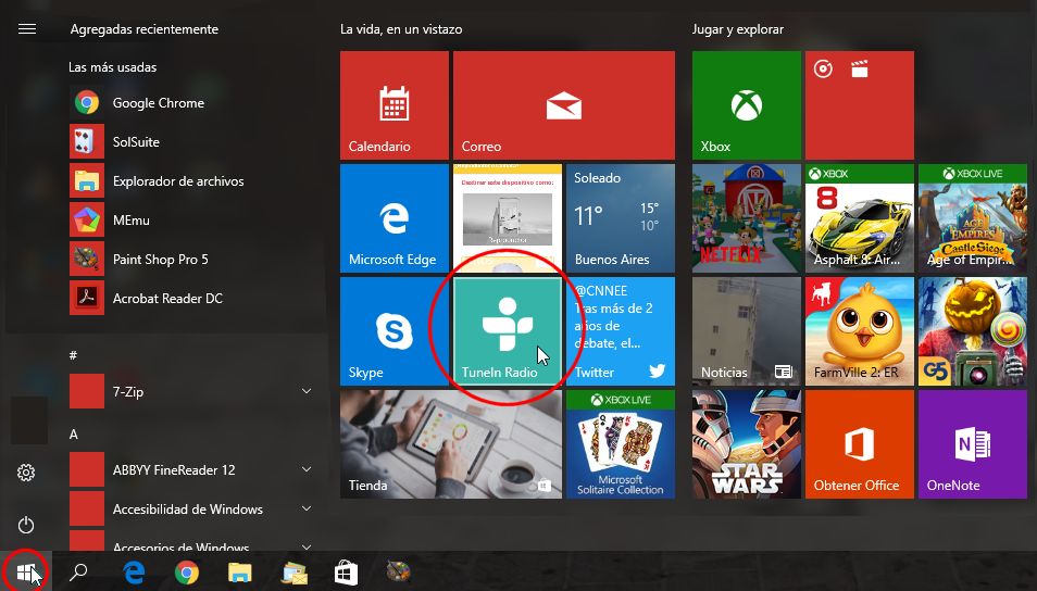 TuneIN radio para Windows 10. Radios locales e internacionales, canales de música, búsqueda por género, etc. Si no lo tienes instalado descargalo de la Tienda de Windows. Gratis.