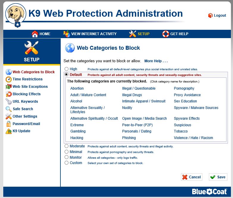 K9: Protege tu PC bloqueando sitios en 70 categorías como porno, drogas, violencia, racismo, hacking, terrorismo, etc. Totalmente configurable. El mejor. Gratis, en inglés.