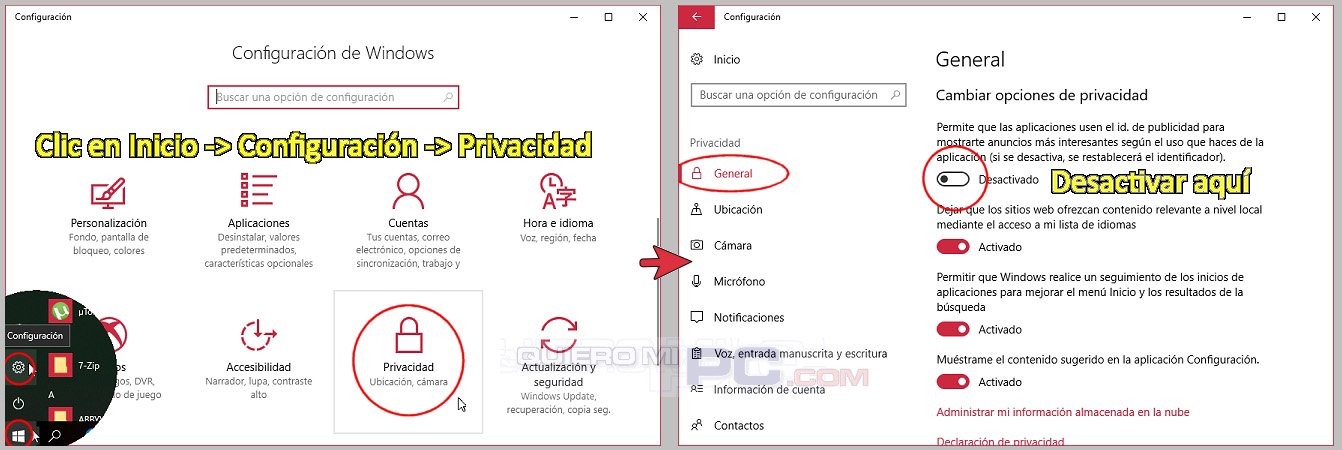 TRUCO: En Windows 10 puedes reducir la publicidad desde las opciones de privacidad como indica el gráfico.