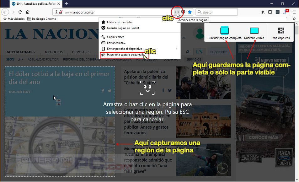 TRUCO: El nuevo FIREFOX QUANTUM, además de ser el navegador más rápido, tiene nuevas herramientas. Por ejemplo la de CAPTURAR PANTALLA: se puede guardar una parte de la página, una zona (como el recuadro de un diario), la pantalla visible, o la Web completa.
