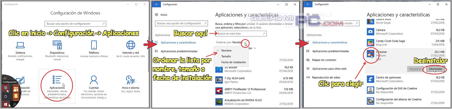 TRUCO: Windows 10 no tiene más el Menú de control. Ahora, para desinstalar un programa, sigue los pasos del gráfico.