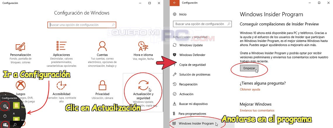 WINDOWS INSIDER PROGRAM te permite ir recibiendo las mejoras de Windows 10 a medida que Microsoft las va liberando para los miembros, antes que al público general. Puedes anotarte y probarlas fácil y gratuitamente. Sigue los pasos del gráfico.