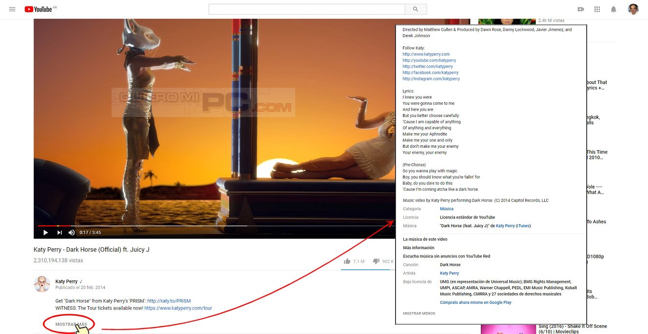 TRUCO: A partir de ahora en Youtube, haciendo clic en "Mostrar Más" se verán más abajo los detalles del artista, del compositor, de la grabación, la letra del tema, y mucho más.