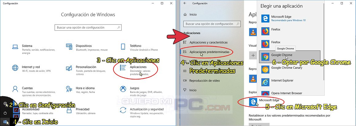 TRUCO: Para cambiar Miscrosoft Edge por Google Chrome como navegador predeterminado en #Windows10 seguir los pasos del gráfico.