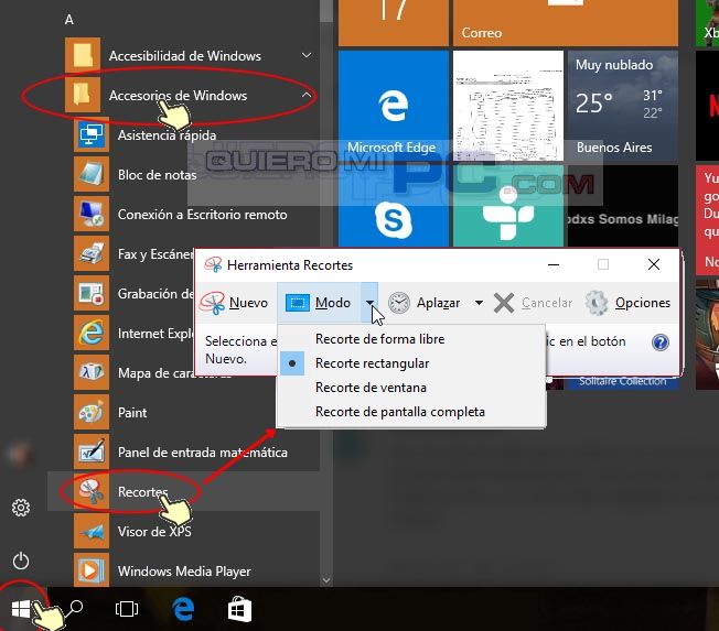 RECORTES de pantalla, herramienta de Windows