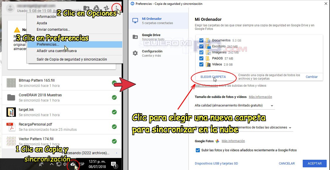 TRUCO: Si usas Google Backup and Sync , podrás agregar carpetas para guardar en la nube siguiendo los pasos del gráfico. Puedes descargar el programa desde https://www.google.com/drive/download/