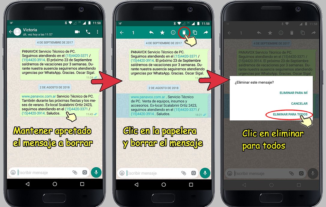 TRUCO: Si enviaste un mensaje por error en WhatsApp, tienes 68 minutos para borrarlo siguiendo los pasos del gráfico. Los mensajes que elimines para todos serán reemplazados por "Este mensaje fue eliminado" en el chat de los destinatarios.