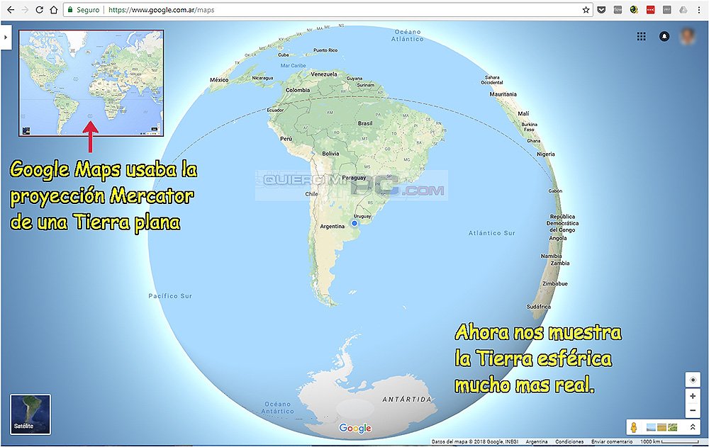 Google Maps le dice adiós a la Tierra plana. Hoy cambió la proyección Mercator que distorsionaba los tamaños, por la proyección esférica mucho más real. . Prueben en www.google.com/maps