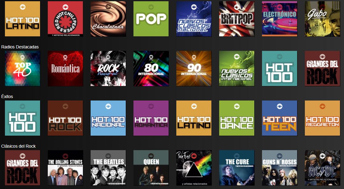CIENRADIOS, portal con decenas de radios y canales de música por artistas, género, paises, etc., sobre todo de Argentina. Gratis.