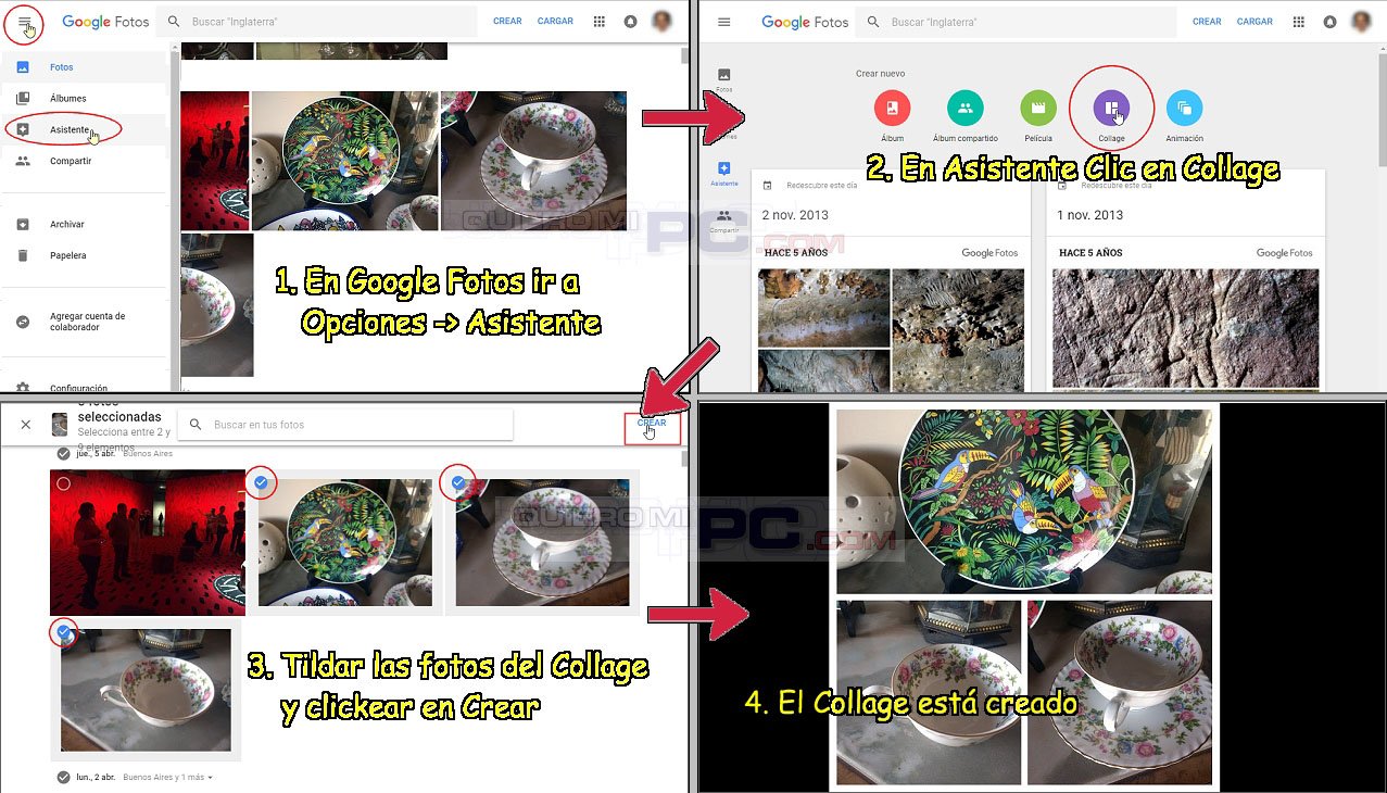 TRUCO: puedes crear un collage muy fácilmente desde Google fotos. Solo eliges las fotos que quieres y con un clic creas el collage como mostramos en el gráfico.