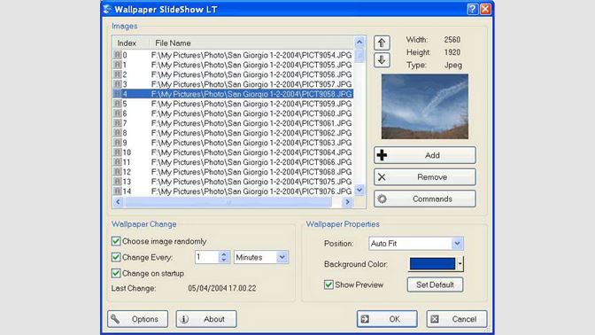 Wallpapaer Slideshow LT es un pequeño progrtama que te cambia el fondo de pantalla de Windows cada tanto tiempo. Puedes elegir el intervalo, las fotos o carpetas que cambiarán y mucho más. Muy configurable. Liviano y gratis. Pruébalo aquí.