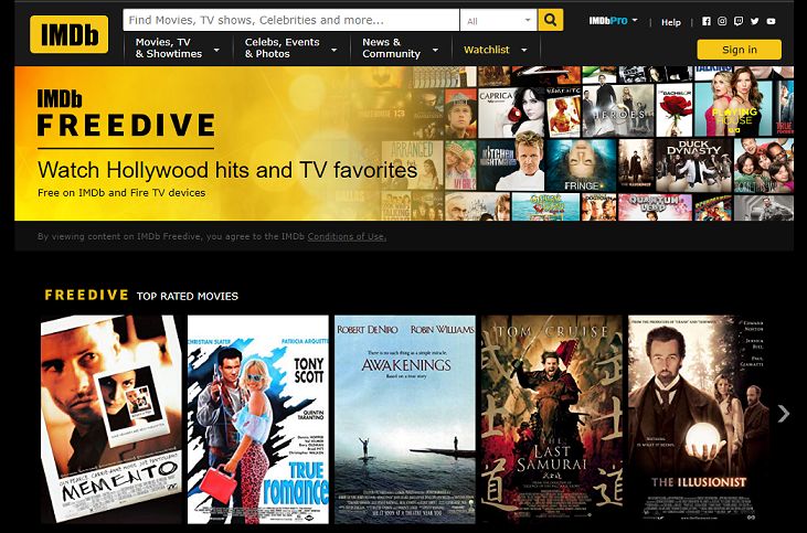FREEDIVE es un servicio de streaming de IMDB y Amazon, con excelentes y muy populares películas y series. Es GRATIS. Pero por ahora sólo en USA aunque se puede ver igual usando un VPN. En inglés con subtítulos en inglés.