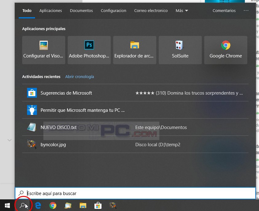 Así se presenta la búsqueda en la última actualización 1903 de Windows 10. Con todo a un click, como los últimos archivos abiertos, los últimos programas usados, etc. Y además ahora busca mucho más rápido.