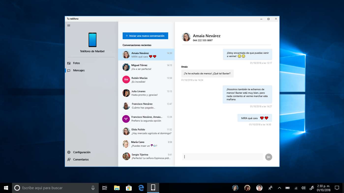 TU TELÉFONO es la nueva versión de la App de Windows 10 . Podrás ver en tu PC las fotos, los mensajes y las notificaciones de tu smartphone. Gratis desde la tienda de Windows 10.