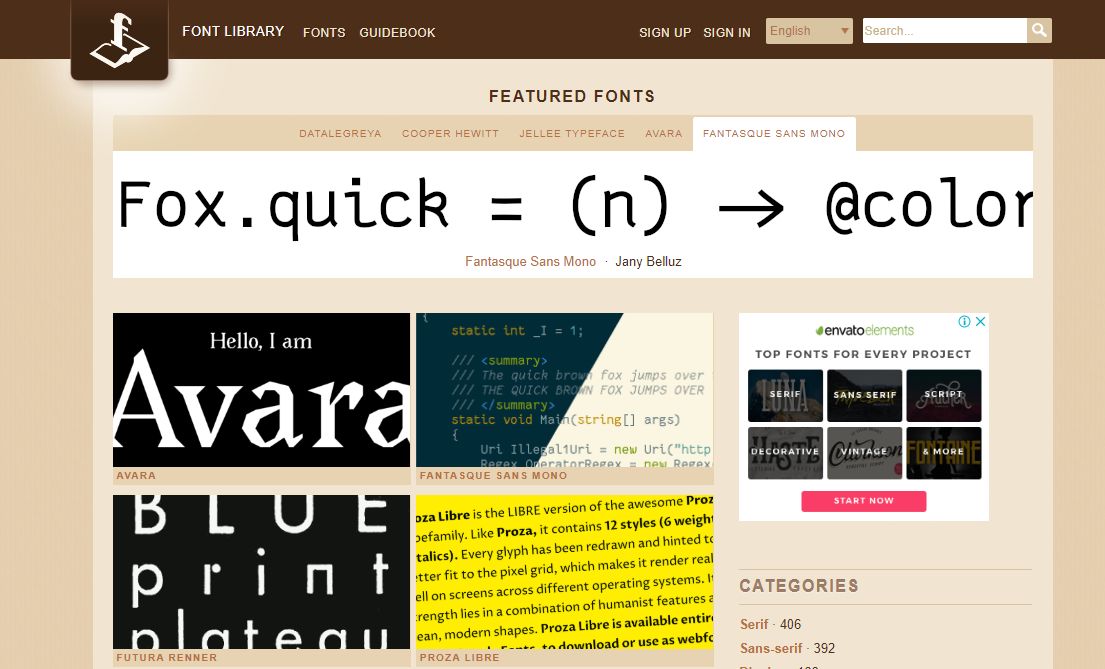 FONT LIBRARY es un banco fuentes de texto GRATUITAS, para usar en tus sitios web, blogs, documentos, etc. Al día de hoy tiene 18602 tipografías en 1840 familias tipográficas. Se puede fuentes buscar por categorías o temáticas.