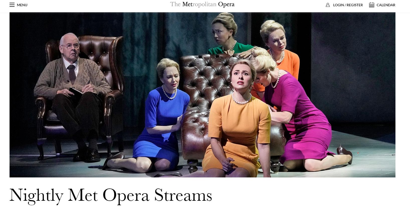 Para los que gusten de la ópera. La New York Metropolitan Opera emite una ópera diaria de su colección digital, totalmente gratis por la cuarentena.