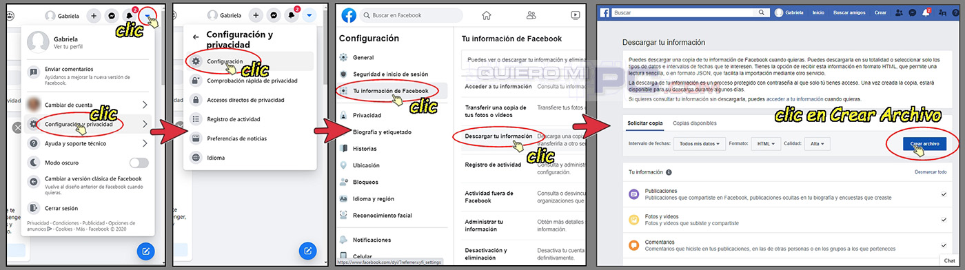 TRUCO FACEBOOK. Puedes descargar y hacer un backup de toda tu información de Facebook, para el caso de que pierdas tu cuenta. Sigue los sencillos pasos del gráfico.