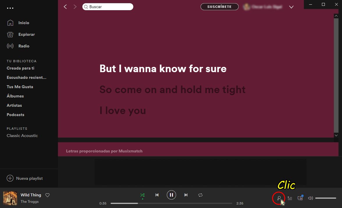 TRUCO: Muchos no saben que Spotify de Windows 10 puede mostrar las letras de las canciones tipo Karaoke. Para eso deben clickear en el ícono de micófono abajo a la derecha como mostramos en el gráfico.clic para agrandar